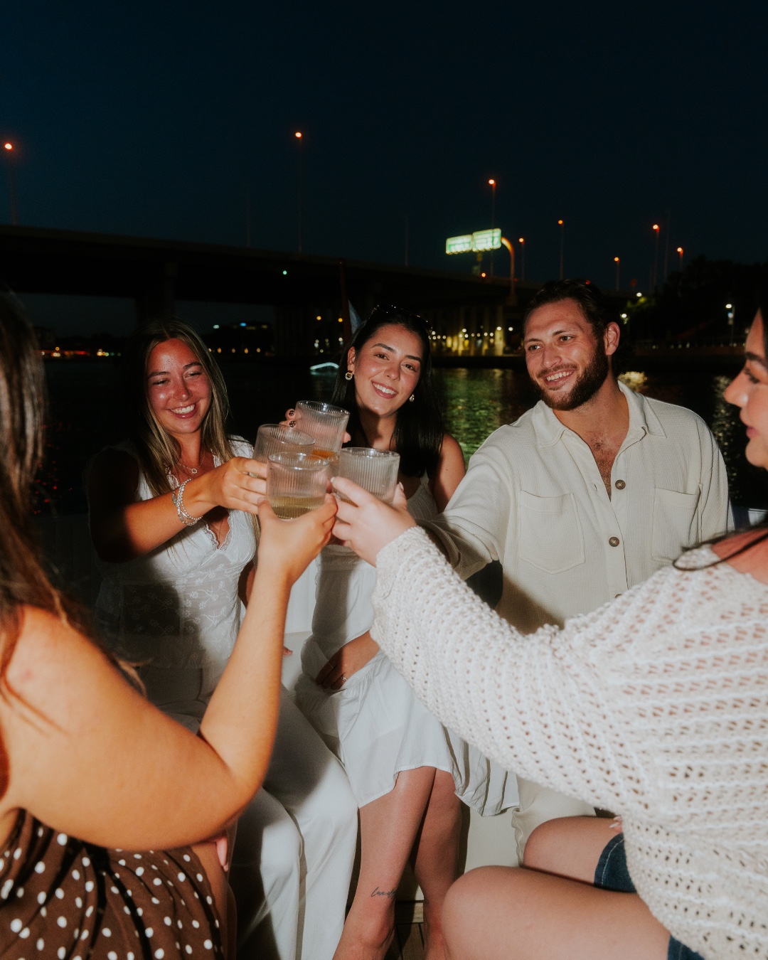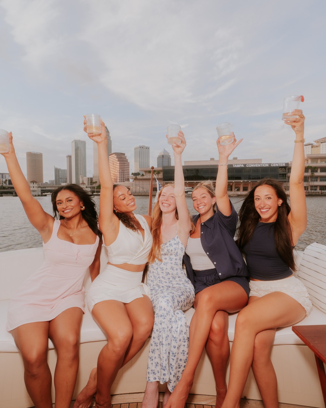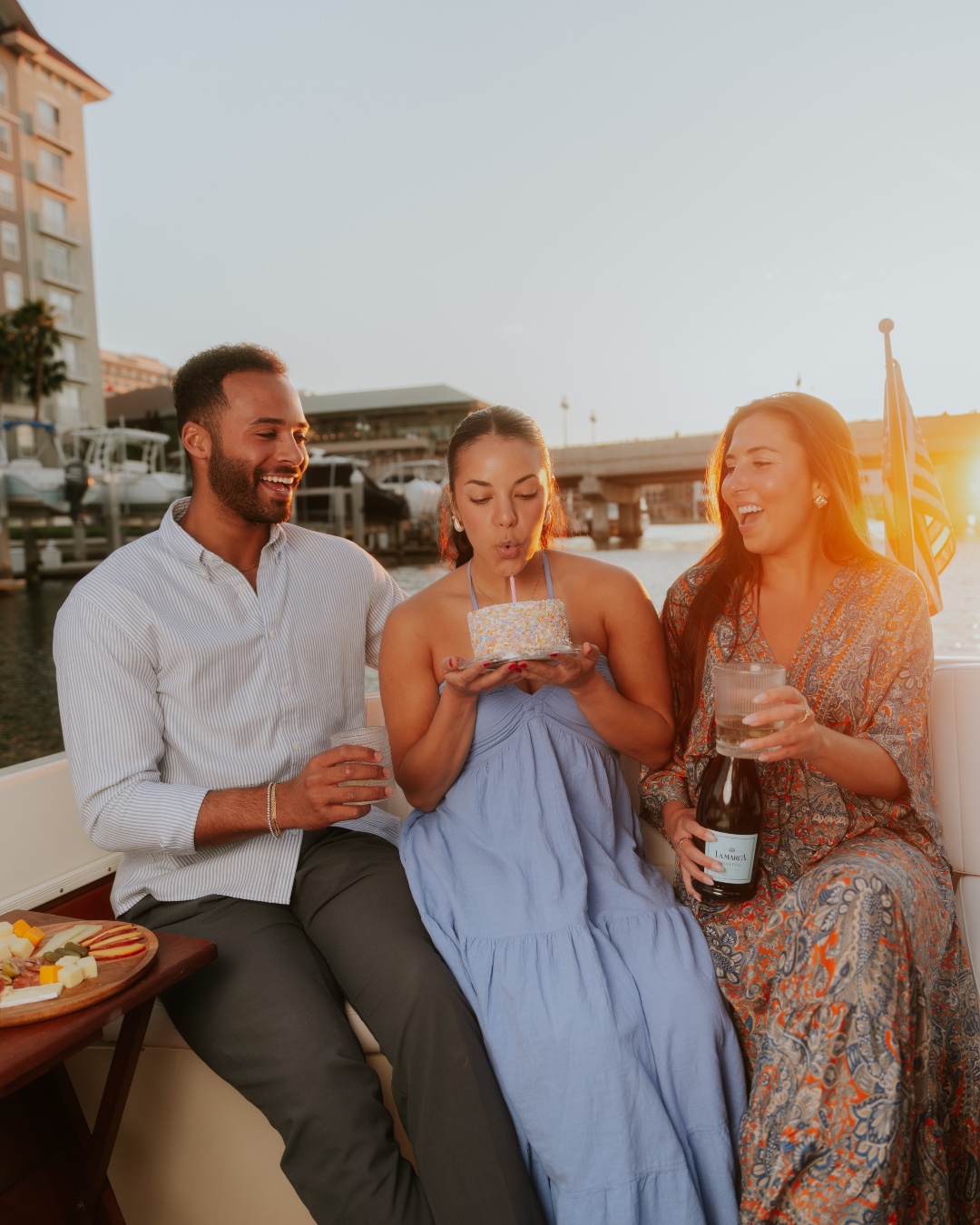 A sunset birthday cruise to remember – effortlessly chic with the perfect European aesthetic, right in the heart of downtown Tampa. Beautiful boat, golden hour views, refreshments, cake, and some of my favorite girls.