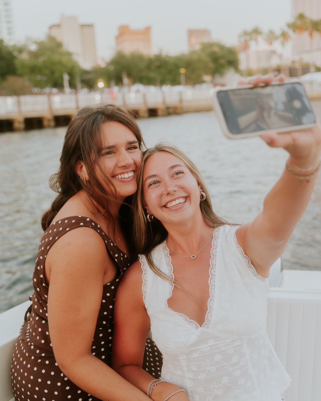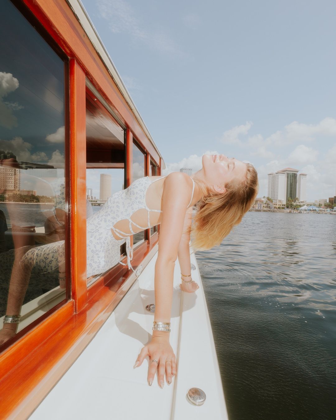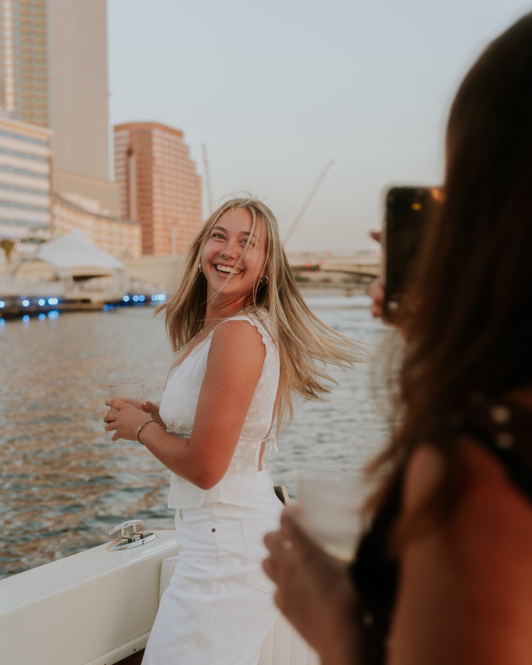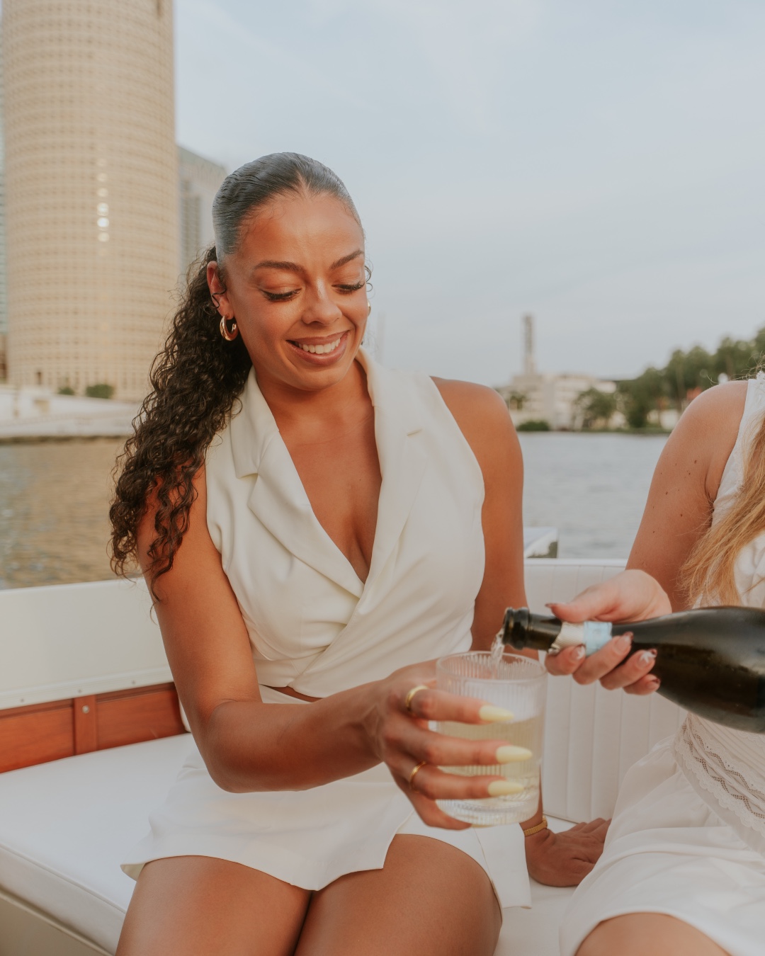 A sunset birthday cruise to remember – effortlessly chic with the perfect European aesthetic, right in the heart of downtown Tampa. Beautiful boat, golden hour views, refreshments, cake, and some of my favorite girls.