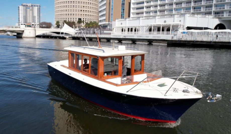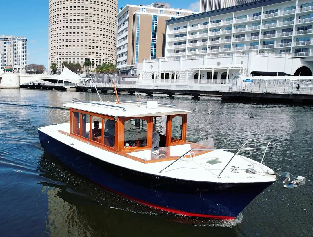 Her design was heavily influenced by the Hinckley picnic boats from Maine and the traditional wooden Venetian water taxis.
