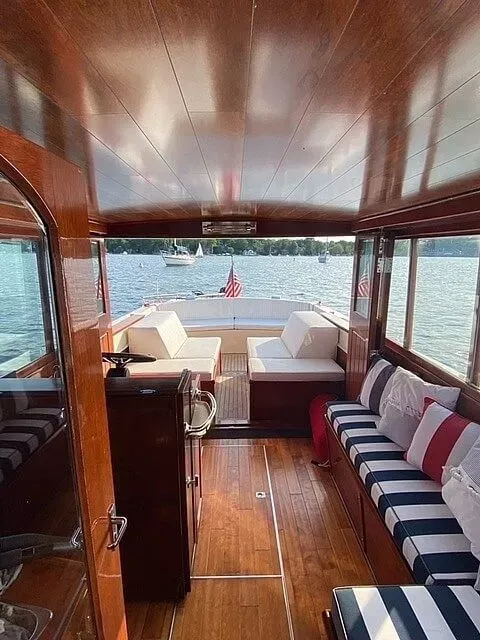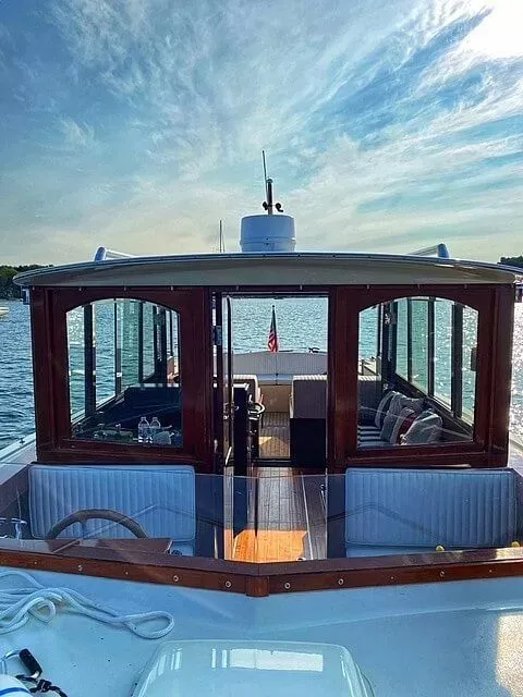 From the beveled glass windows, the dual cockpits with authentic Model T wheels, to the exquisite teak and mahogany woodwork on the deck and interior, she is a head turner.